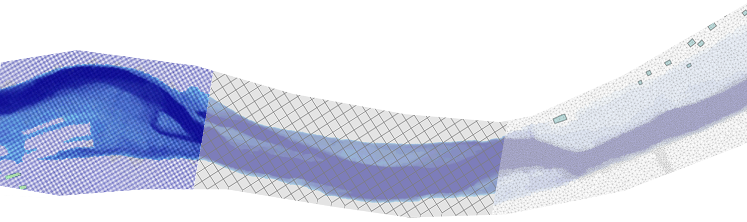 Should we rely on proven, centuries-old 1D methods, even if it means making a few extra gray hairs when stabilizing this damn model, or should we go directly to a complete 2D model, with the risk of seeing the calculation times lengthen? And in this case what to do with this LIDAR which does not cross (in most cases...) the surface of the water ?